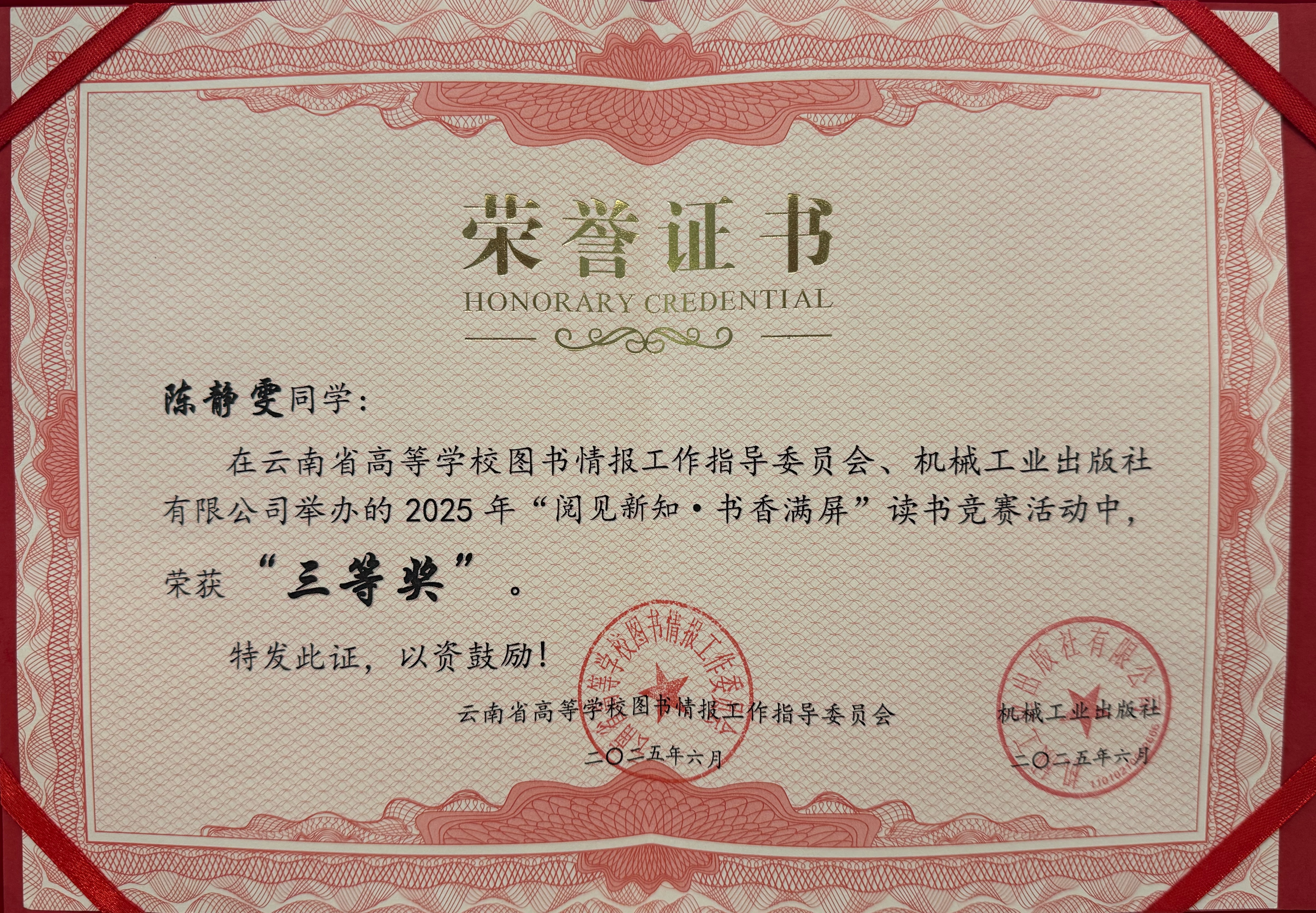 昆明传媒学院熊晓凤、陈静雯同学在 2025 年 “阅见新知.书香满屏” 读书竞赛活动中荣获三等奖
