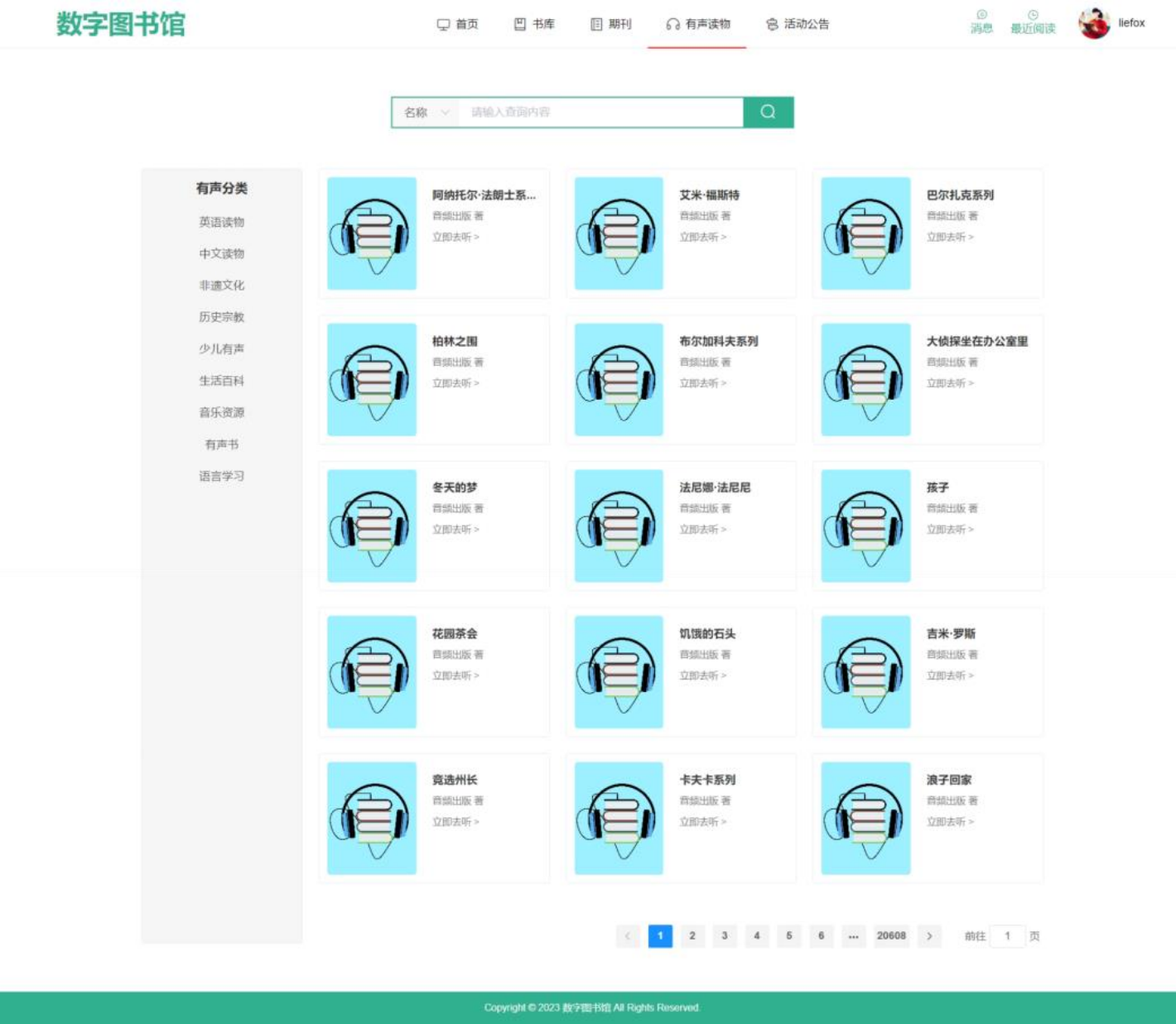 1.分类查找:按主题、作者筛选有声资源,支持名称关键词搜索;